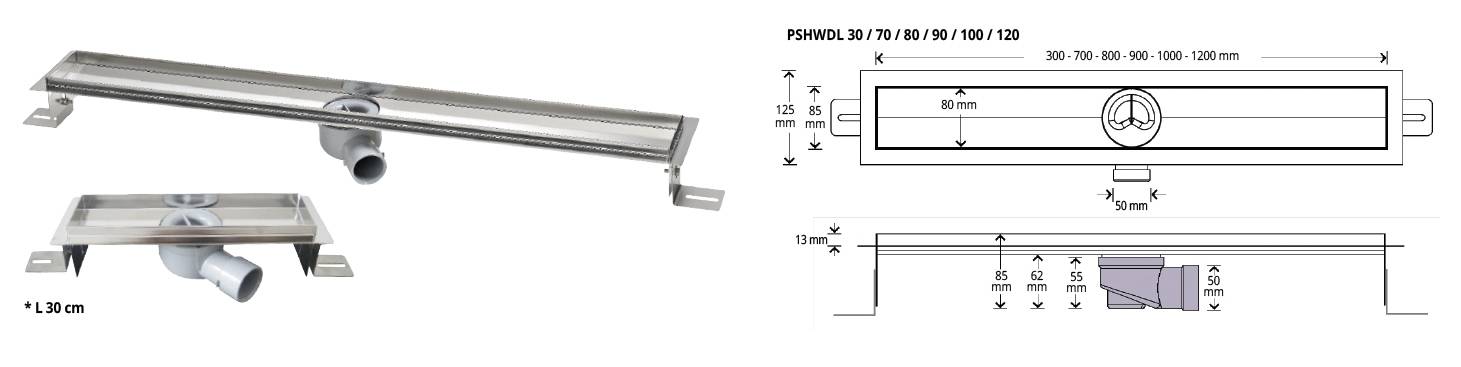 ProShower Base L é uma caleira em aço inoxidável AISI 304/1.4301 – aço V2A para a realização de duche ao nível do chão. Esta caleira tem com uma altura total de 85 mm, é completada por 6 grelhas diferentes em aço inoxidável. ProShower Base L submete-se a um eletro-polimento e subsequente passivação, o que garante uma excelente resistência em qualquer ambiente. A sua baixa espessura combinada com o sifão totalmente ajustável, a modularidade e o elevado número de grelhas tornam-na uma solução muito procurada.